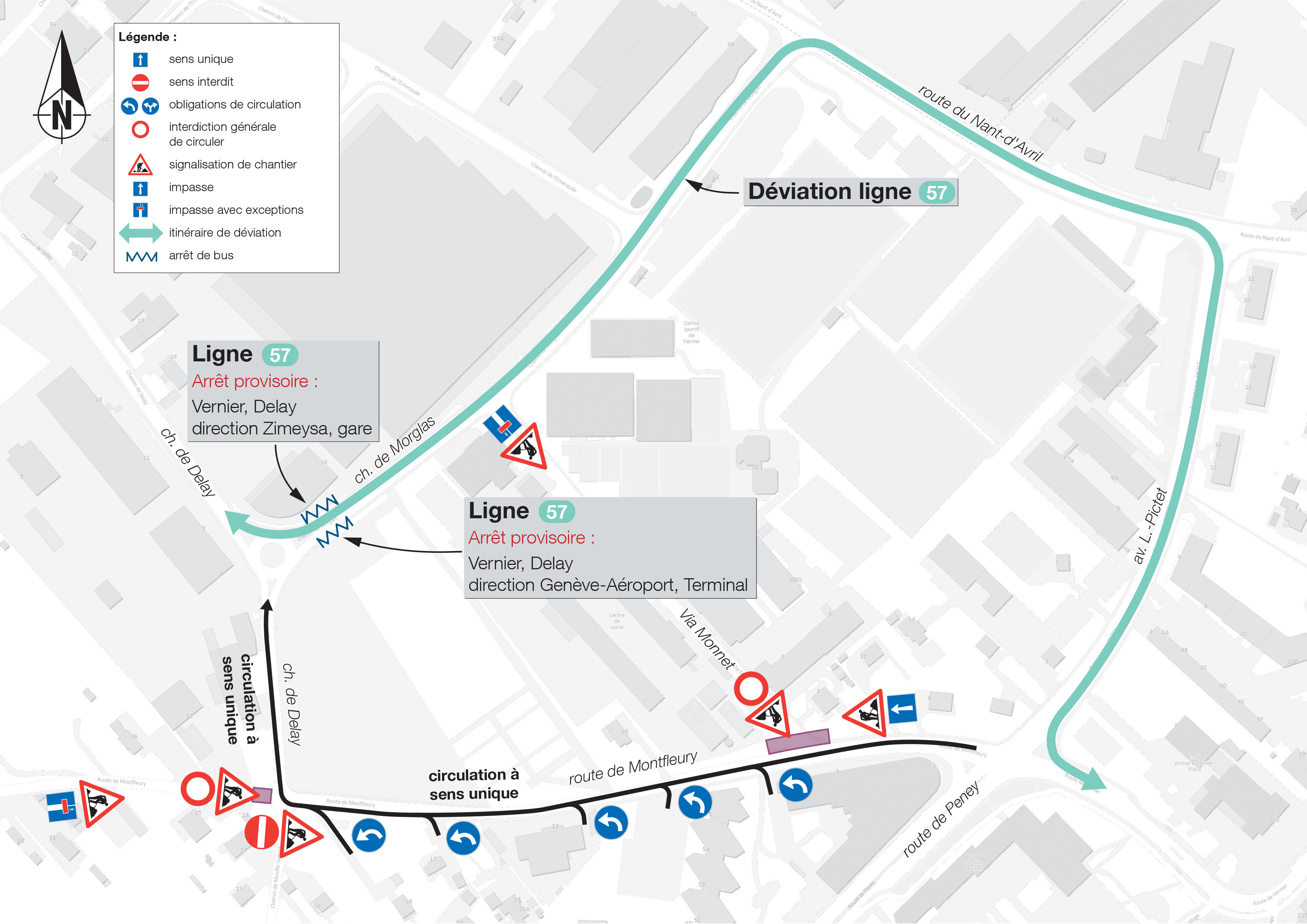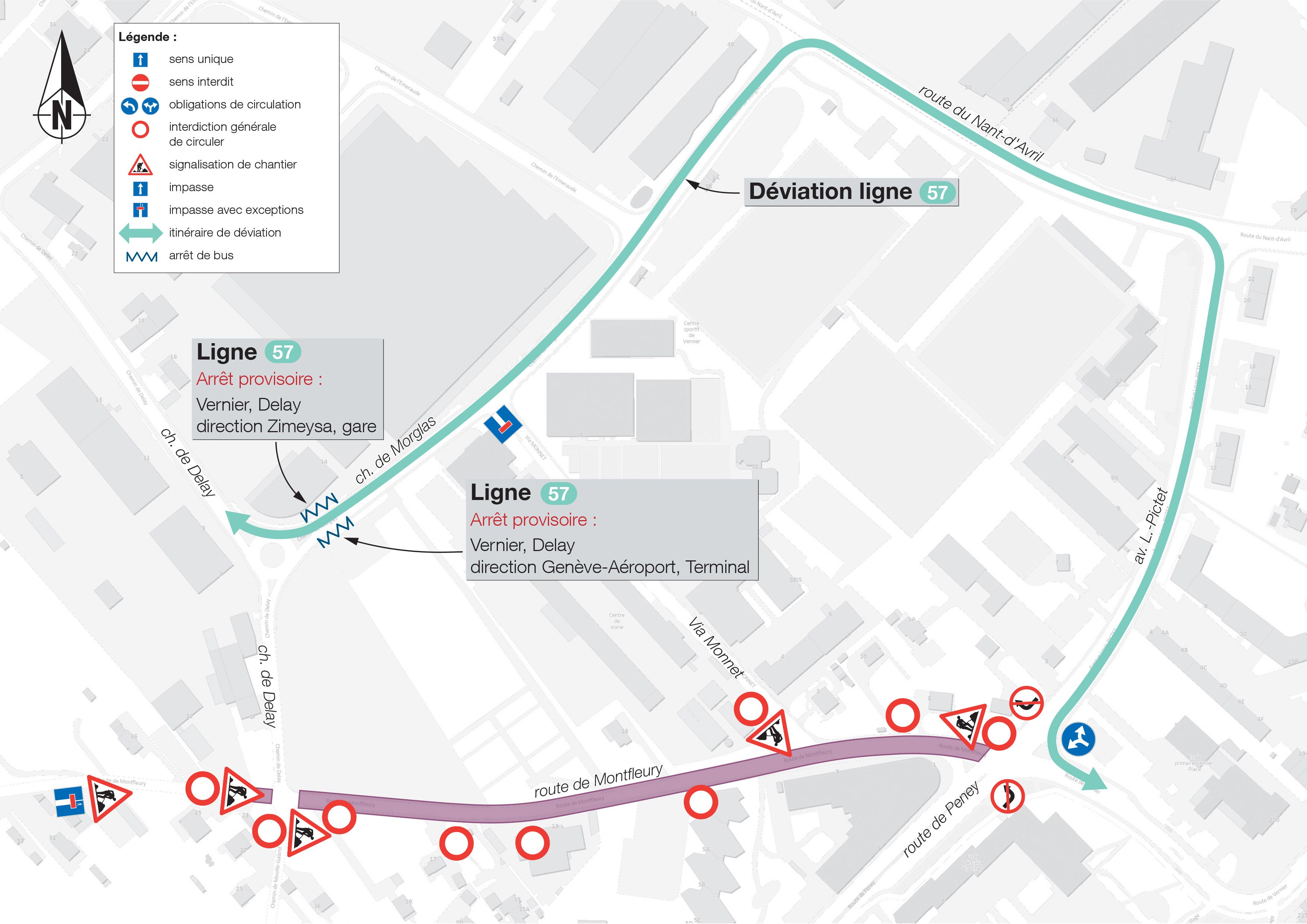 - Déviation de la ligne 57 par l'avenue Louis-Pictet et la route du Nant-d’Avril.