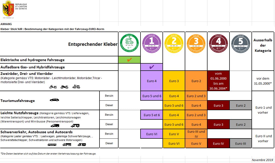 Type de publication Documents d'information Date de publication 26 novembre 2019 Auteur Office cantonal de l'environnement (OCEV) Publié dans Qualité de l'air, Lors de pics de pollution: circulation différenciée Stick'AIR Document Stick'AIR und differenzierten Verkehr in Genf : Informationsblatt auf Deutsch Détail Stick'AIR und differenzierten Verkehr in Genf : Informationsblatt auf Deutsch Was ist mein Stick'AIR ? (Diese Webseite ist in Französisch) Annexe(s) Tabelle die Kategorie Stick'AIR mit dem Emissionscode des Fahrzeuges, auf Deutsch Bestimmung der Kategorien mit der Fahrzeug-EURO-Norm, auf Deutsch Type de publication Documents d'information Date de publication 26 novembre 2019 Auteur Office cantonal de l'environnement (OCEV) Publié dans Qualité de l'air, Lors de pics de pollution: circulation différenciée Stick'AIR