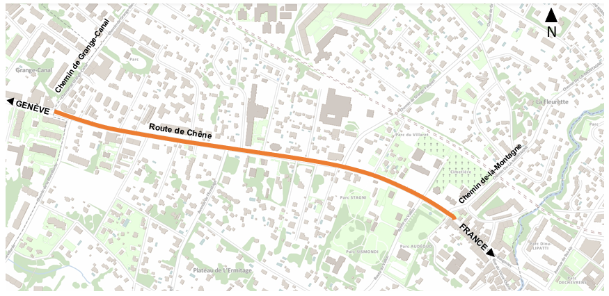 Route de Chêne, entre le chemin de Grange-Canal et le chemin de-la-Montagne
