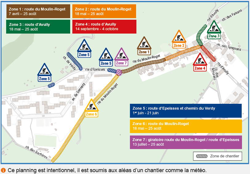 Zones 3 et 4 / Route d'Avully - Dès le 18 mai 2026 durant 4 mois et demi environ