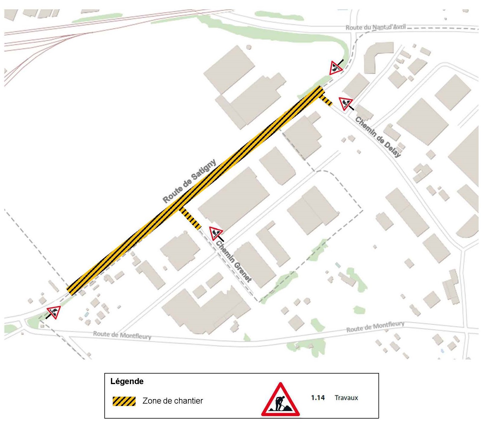 Mesure d'amélioration des mobilités actives le long de la route de Satigny avec la création d'une piste cyclable, et facilitation de l'accessibilité à la ZIMOGA (zone industrielle de Mouille-Galand).