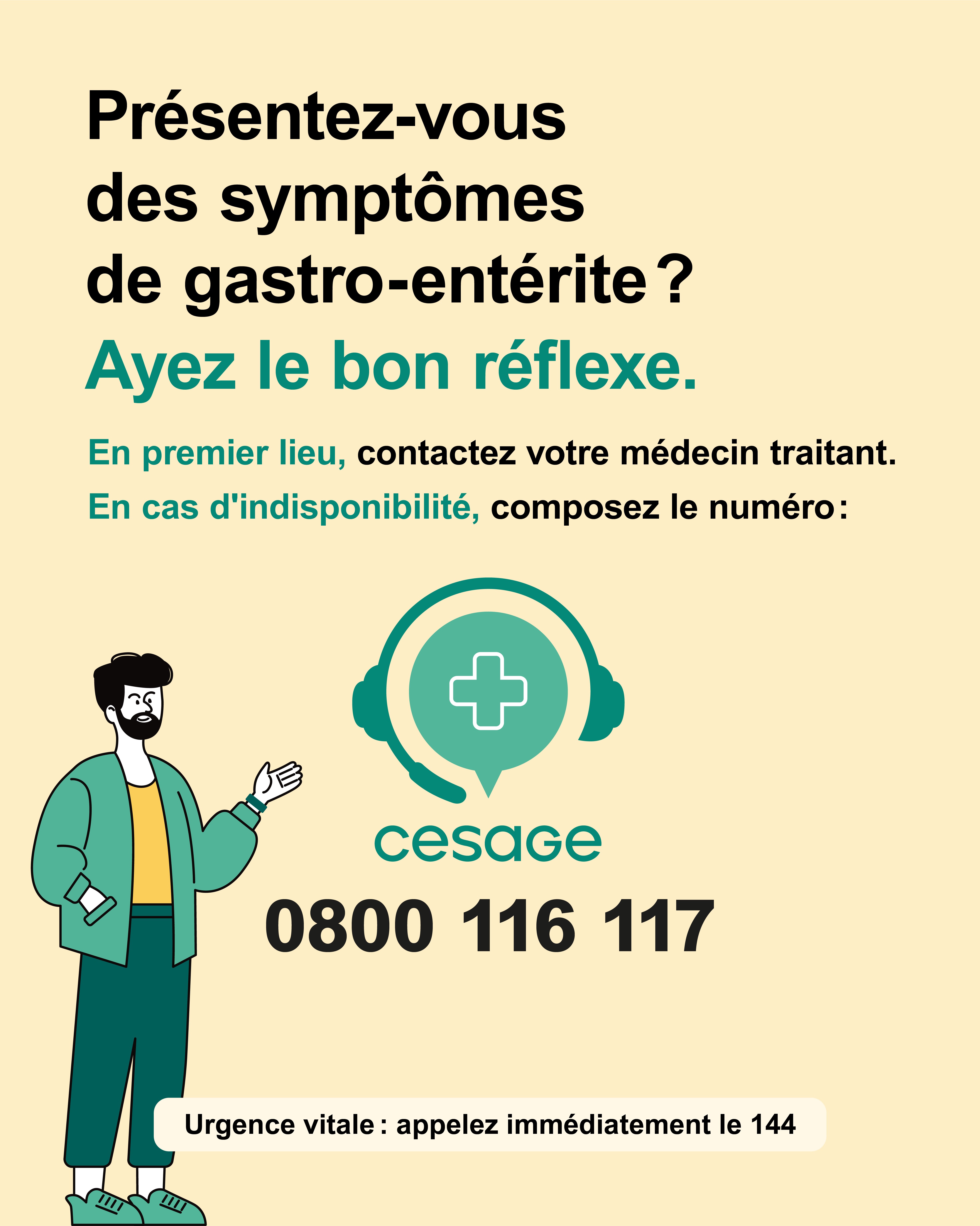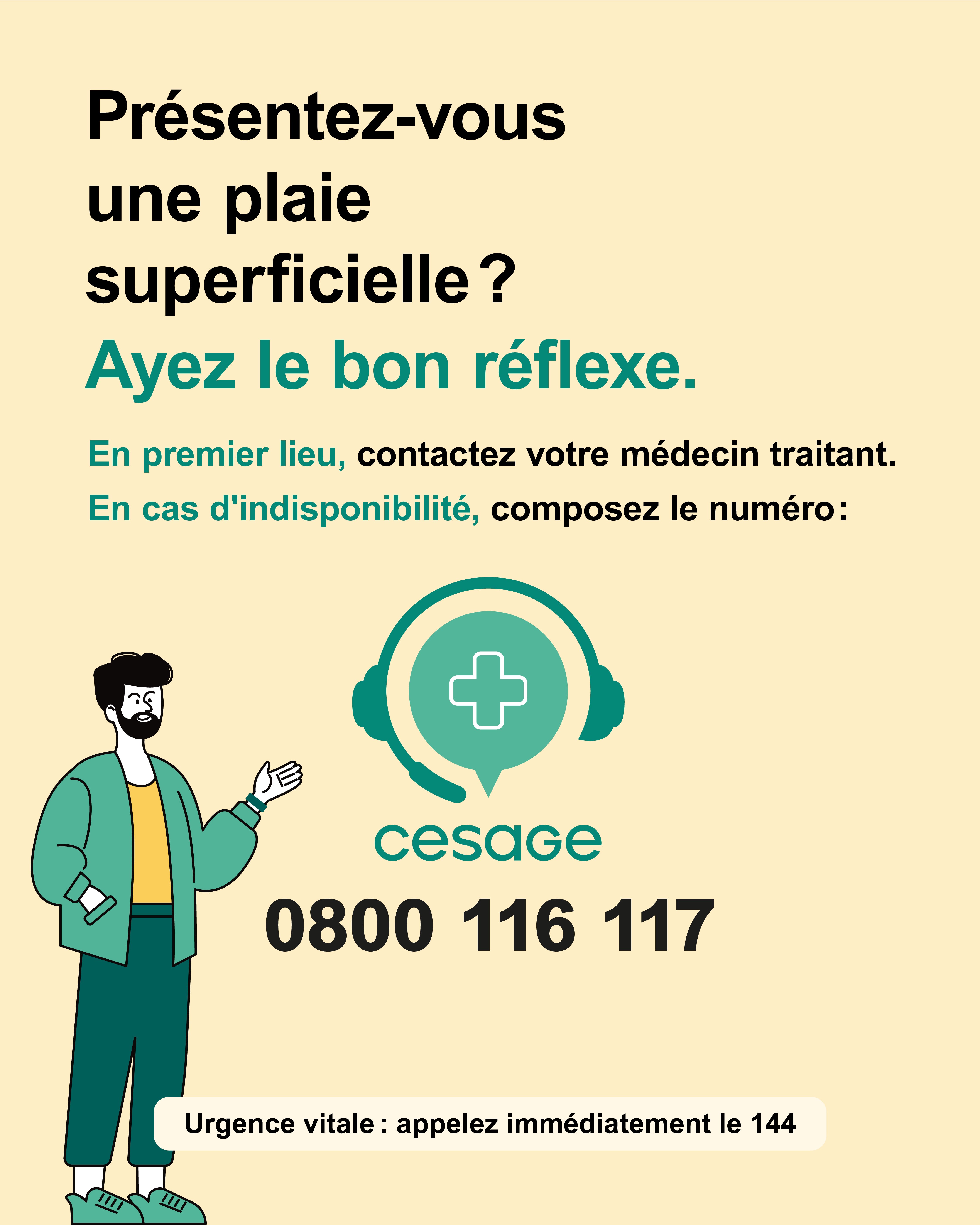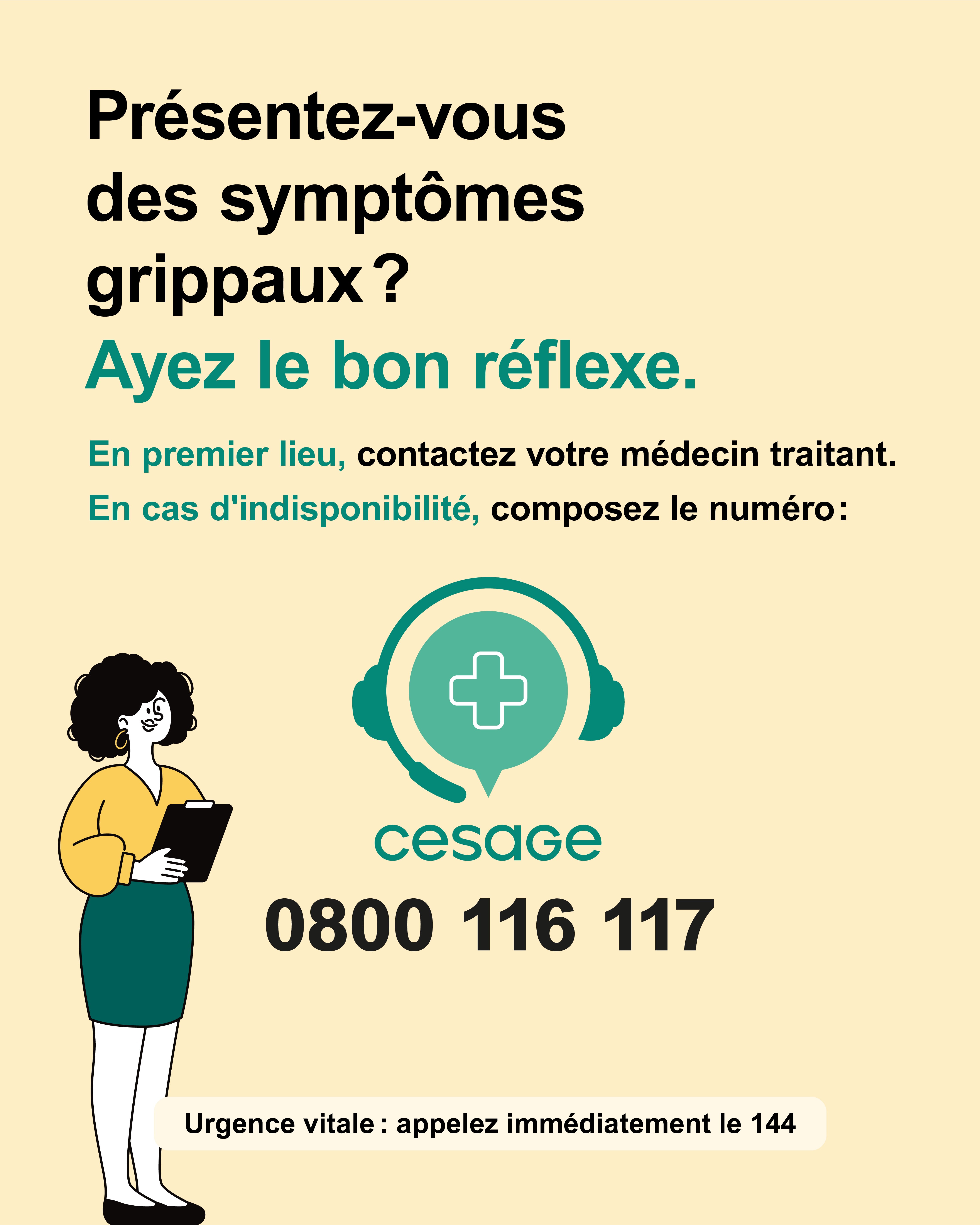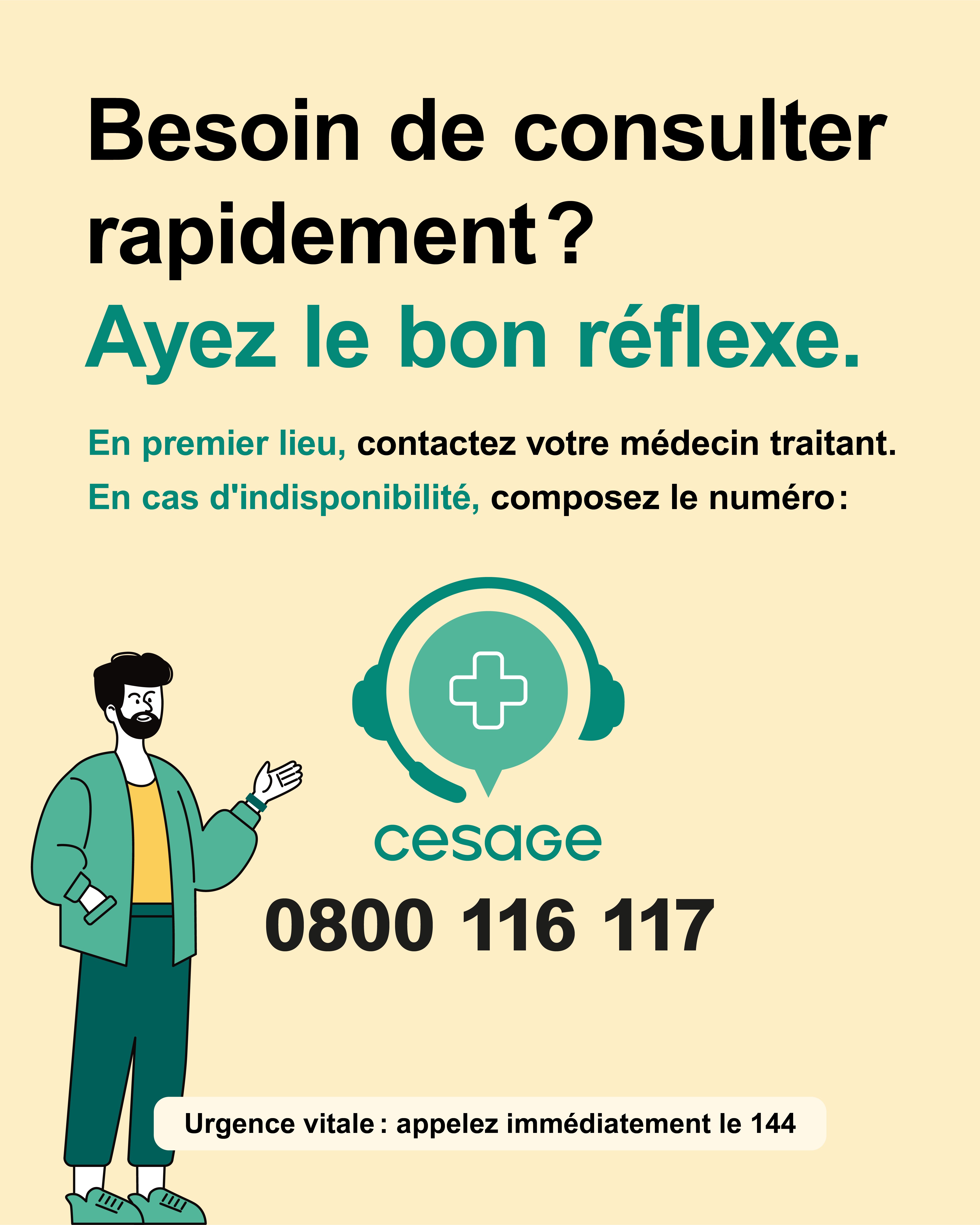 En cas d’indisponibilité du médecin traitant, la CeSaGe constitue le point de contact de référence.