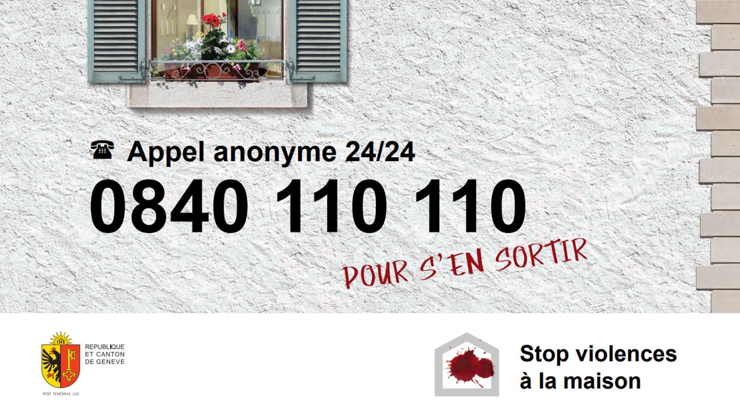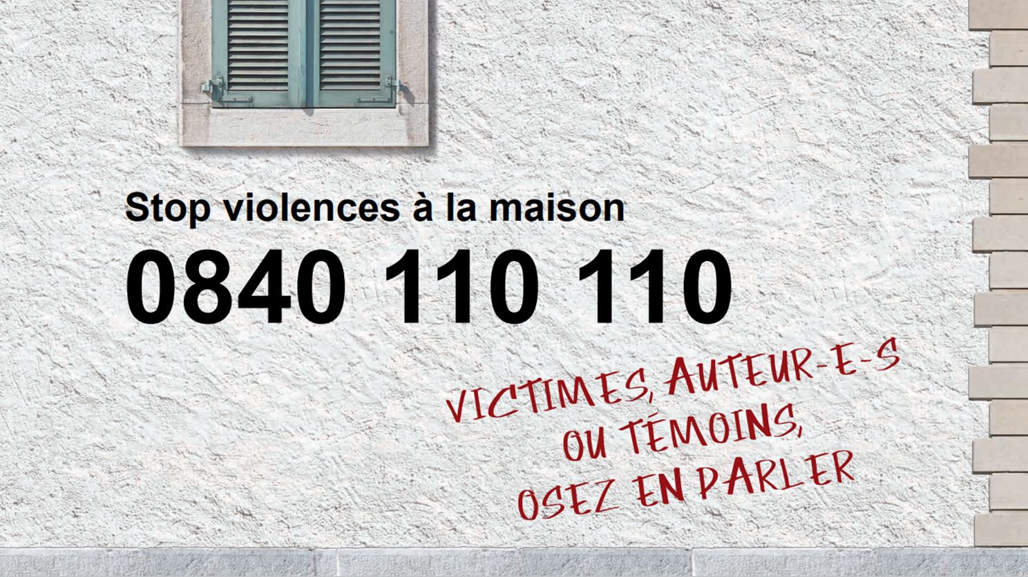Elle fait également connaître la ligne téléphonique violences domestiques 0840 110 110, qui offre une écoute anonyme et une orientation aux personnes concernées.