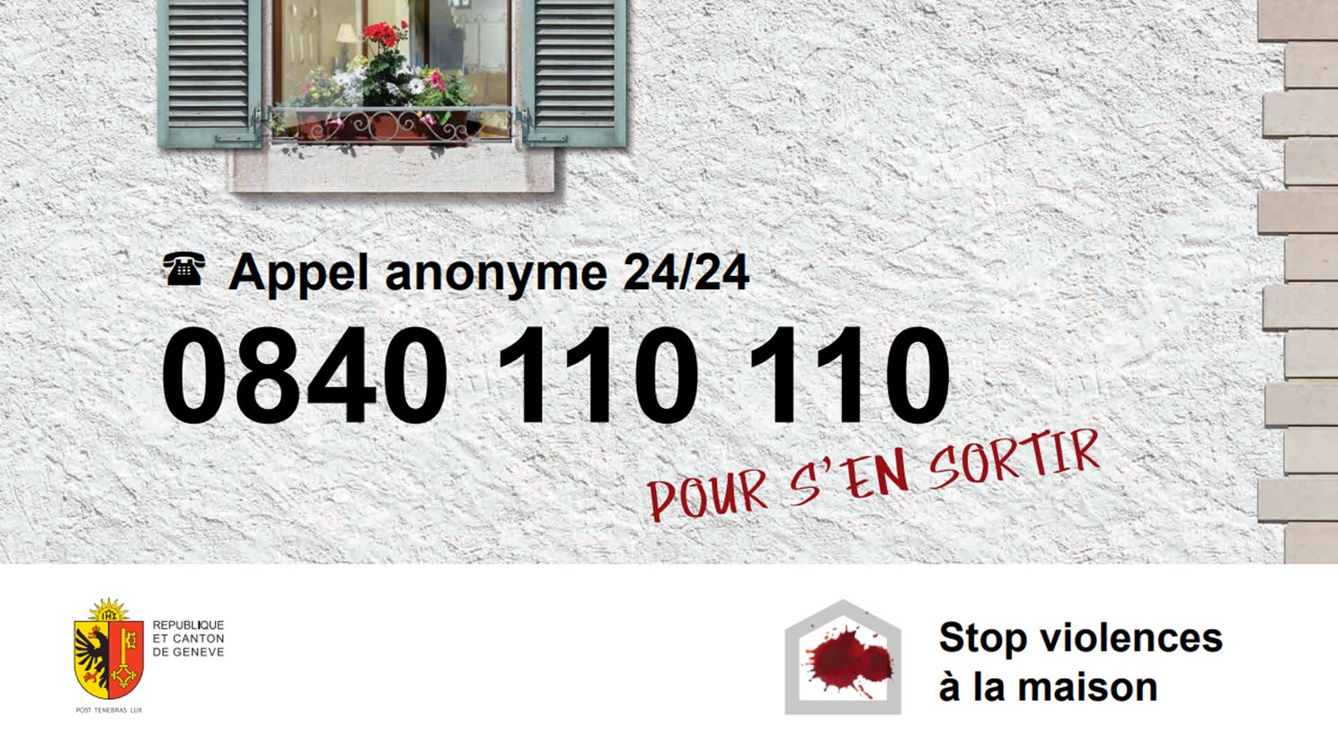 Elle fait également connaître la ligne téléphonique violences domestiques 0840 110 110, qui offre une écoute anonyme et une orientation aux personnes concernées.