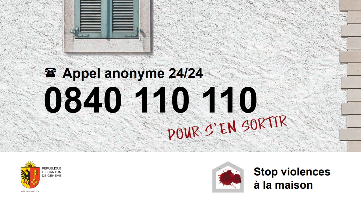 Elle fait également connaître la ligne téléphonique violences domestiques 0840 110 110, qui offre une écoute anonyme et une orientation aux personnes concernées.