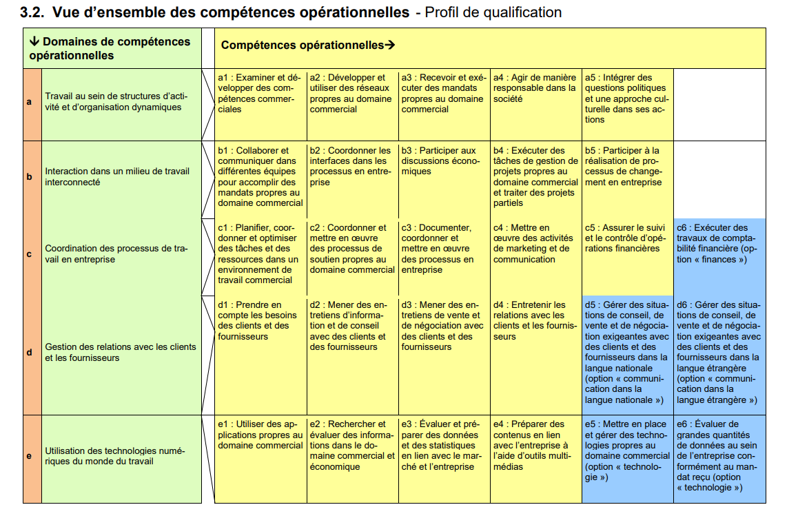 Type de publication Documents d'information Date de publication 23 janvier 2024 Auteur Direction générale de l'enseignement secondaire II Document Tableau de vue d'ensemble des compétences opérationnelles Détail Ce tableau présente une vue d'ensemble des compétences opérationnelles, selon le profil de qualification Type de publication Documents d'information Date de publication 23 janvier 2024 Auteur Direction générale de l'enseignement secondaire II