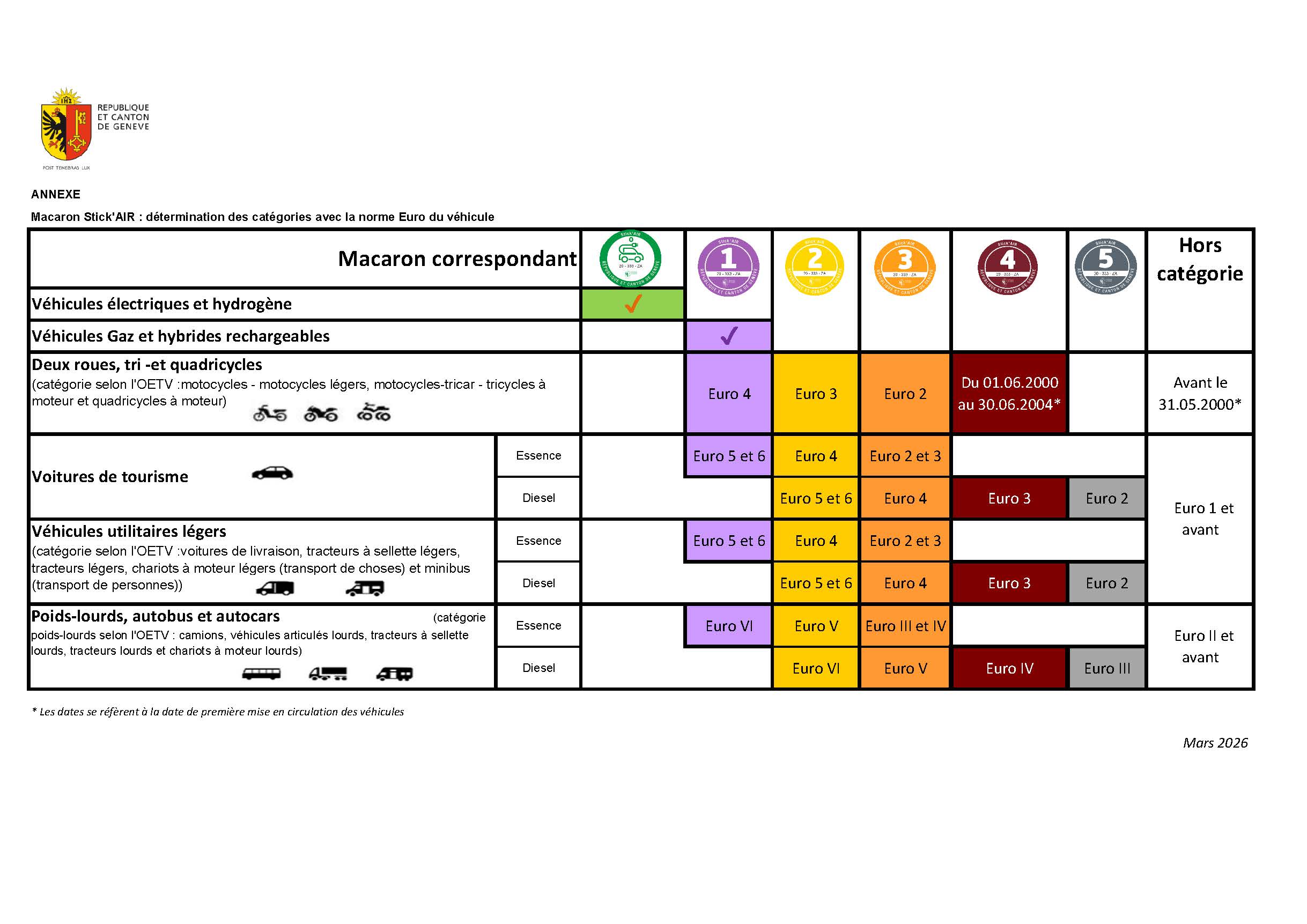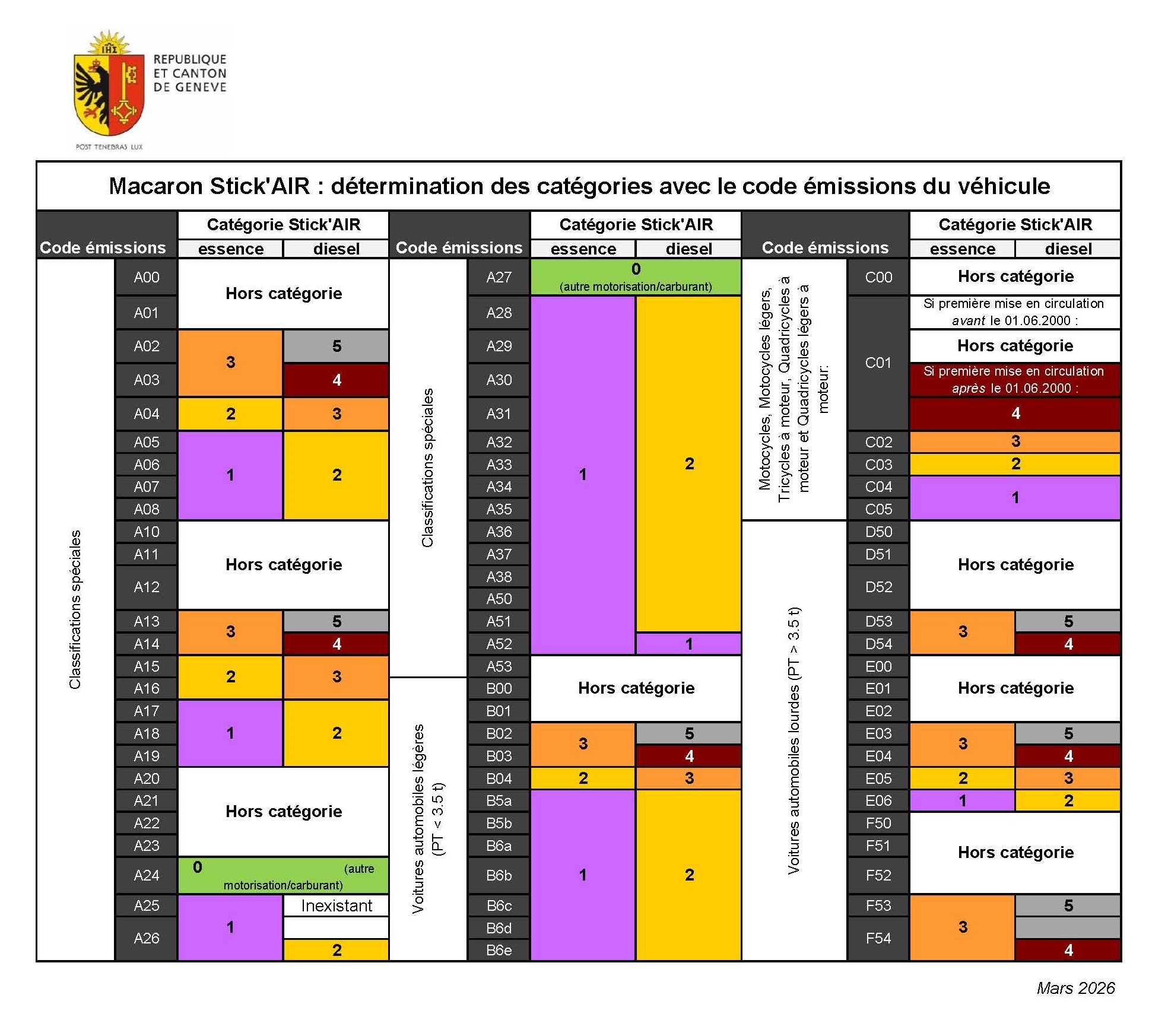 La détermination de la catégorie du macaron Stick'AIR (0, 1, 2, 3, 4, 5, 6, hors catégorie*) d'un véhicule donné est de la responsabilité du détenteur du véhicule. Elle doit pouvoir être confirmée en tout temps à l'autorité par le permis de circulation du véhicule.